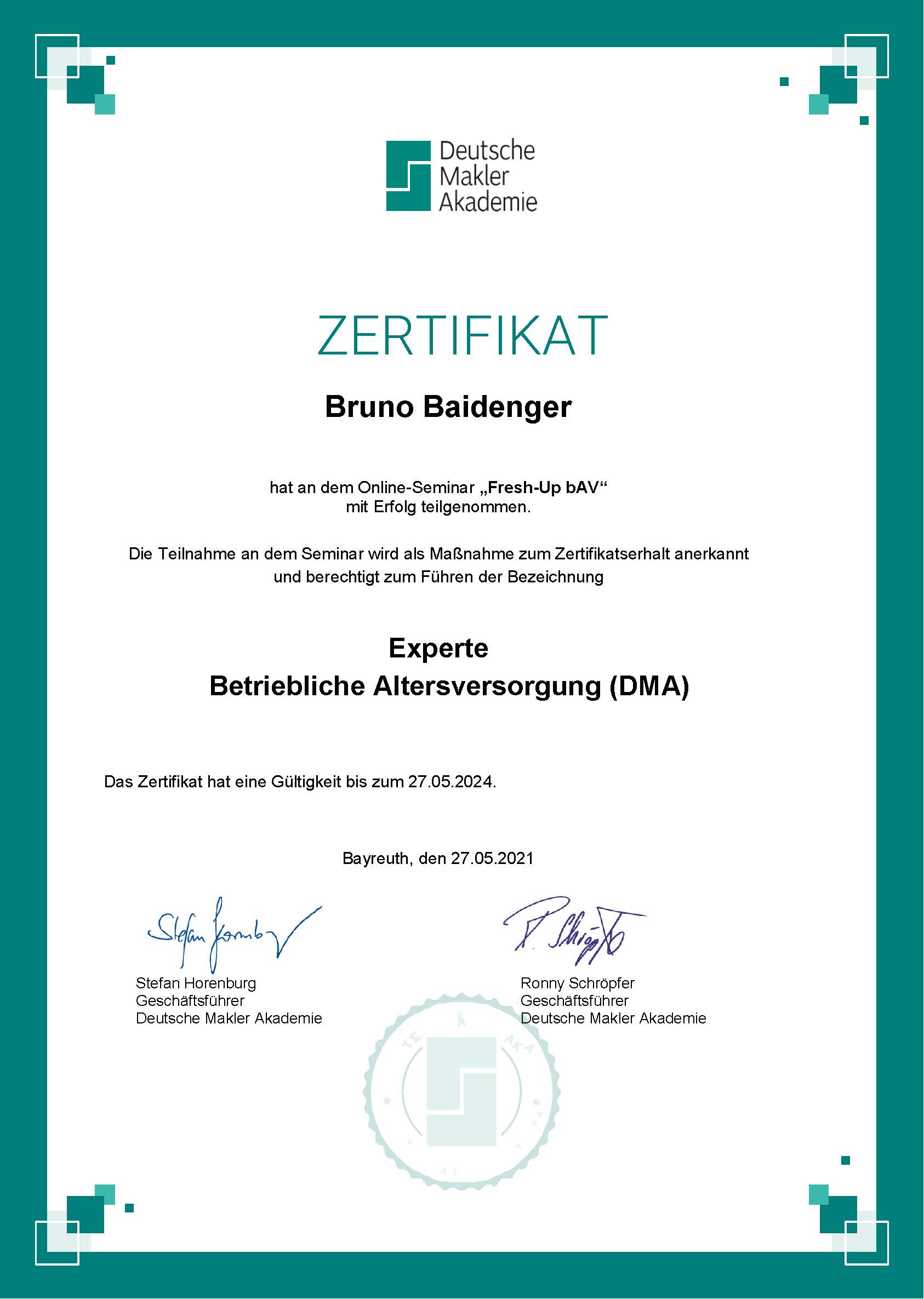| 2021 | Experte Betriebliche Altersversorgung (DMA) |